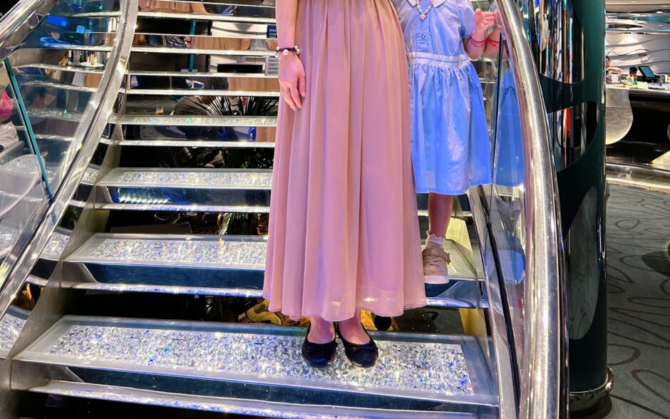 なので、寄港地や船内で遊ぶときは動きやすい服装をして、レストランやイベントへ行く前に着替えるというイメージです。
