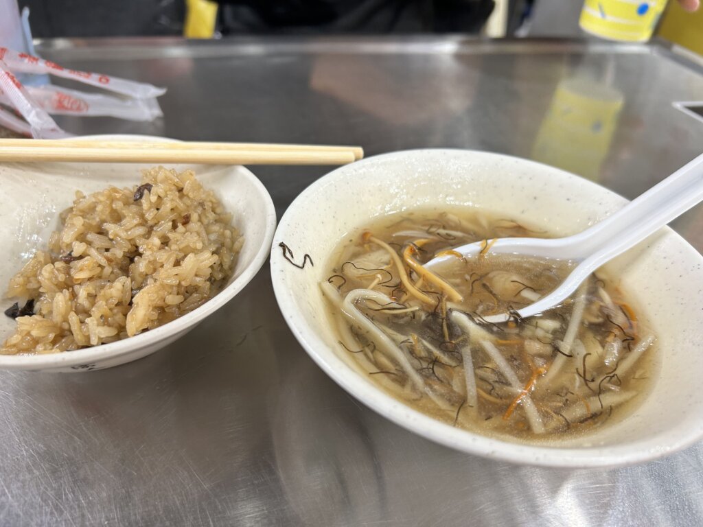 1店舗目に訪れたのが、夜市でも特に人気の高い【5番】のお店。定番メニューの「螃蟹羹(カニスープ)」と「油飯(おこわ)」を注文しました。