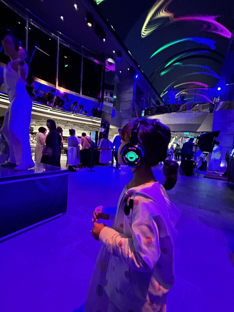 ヘッドホンをつけてそれぞれ音楽を楽しむスタイルなので、見てるだけでも面白いのですが、せっかくなので娘と2人で参加しました。