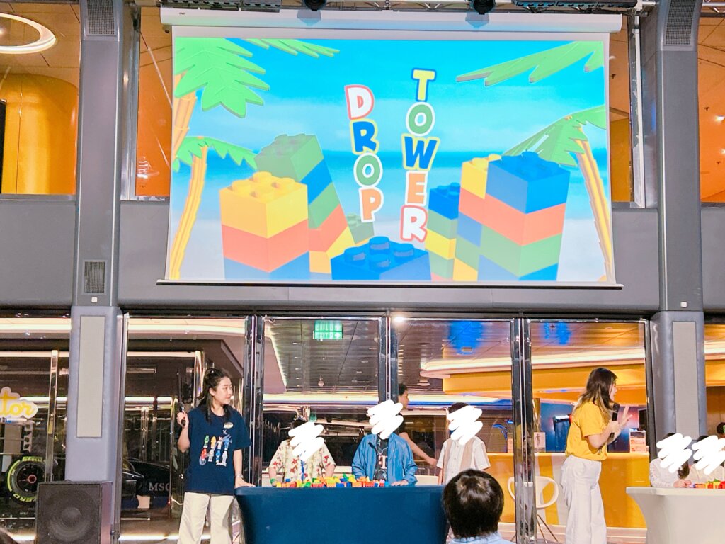 クルーズ船のイベントというと「大人向けが多いかな?」と思いがちですが、MSCベリッシマはレゴとコラボしているということもあり、こうした子どもが主役になれるイベントが毎日用意されているのも、子連れには大きな魅力でした。